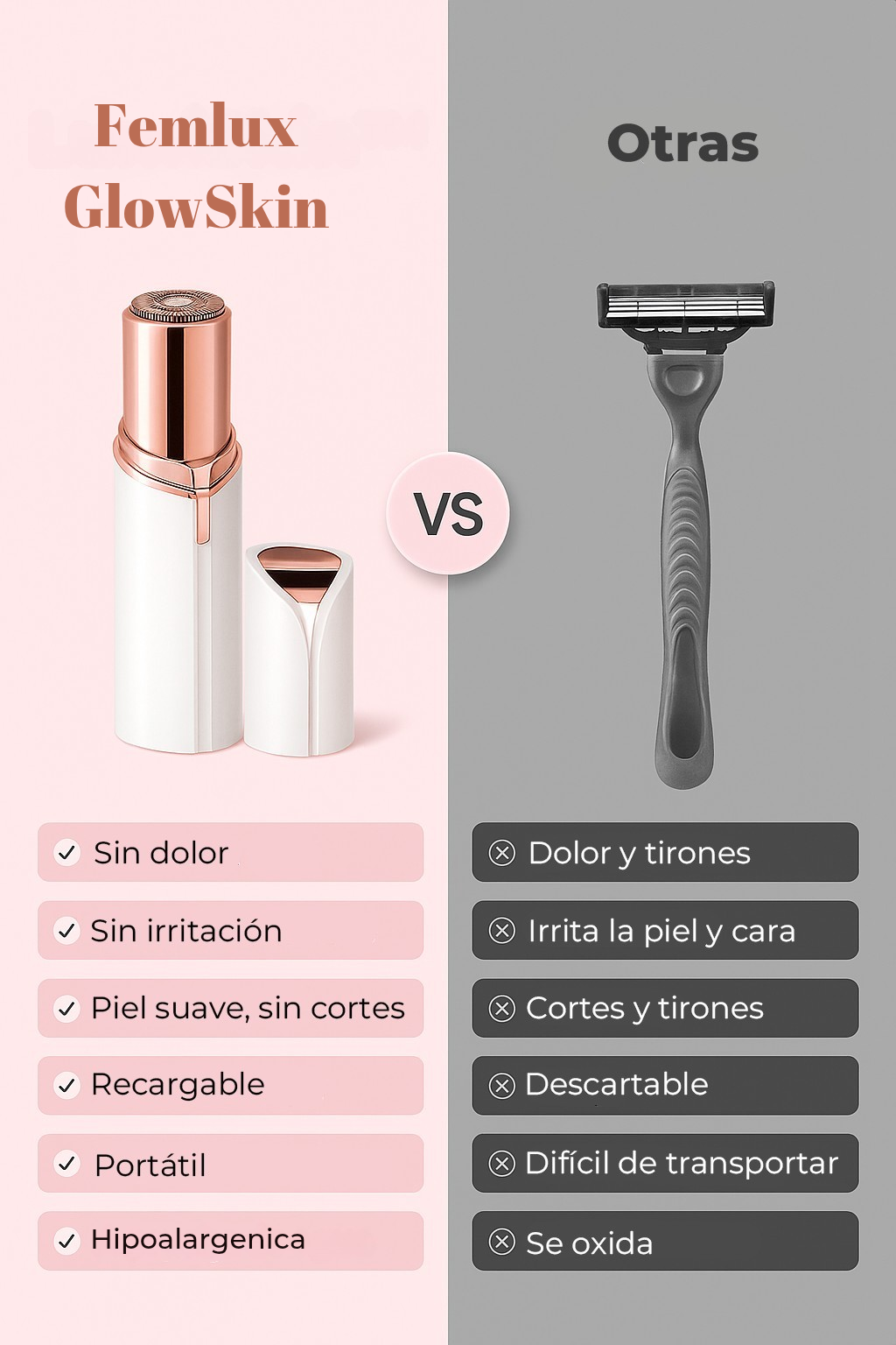 La depiladora facial Femlux GlowSkin es la solución perfecta para aquellas mujeres que buscan una forma rápida y efectiva de mantener su rostro libre de vello. Diseñada específicamente para el uso facial, su cabezal único permite una depilación precisa y cómoda, garantizando resultados suaves sin irritación. La misma corta al ras, SIN arrancar el vello.